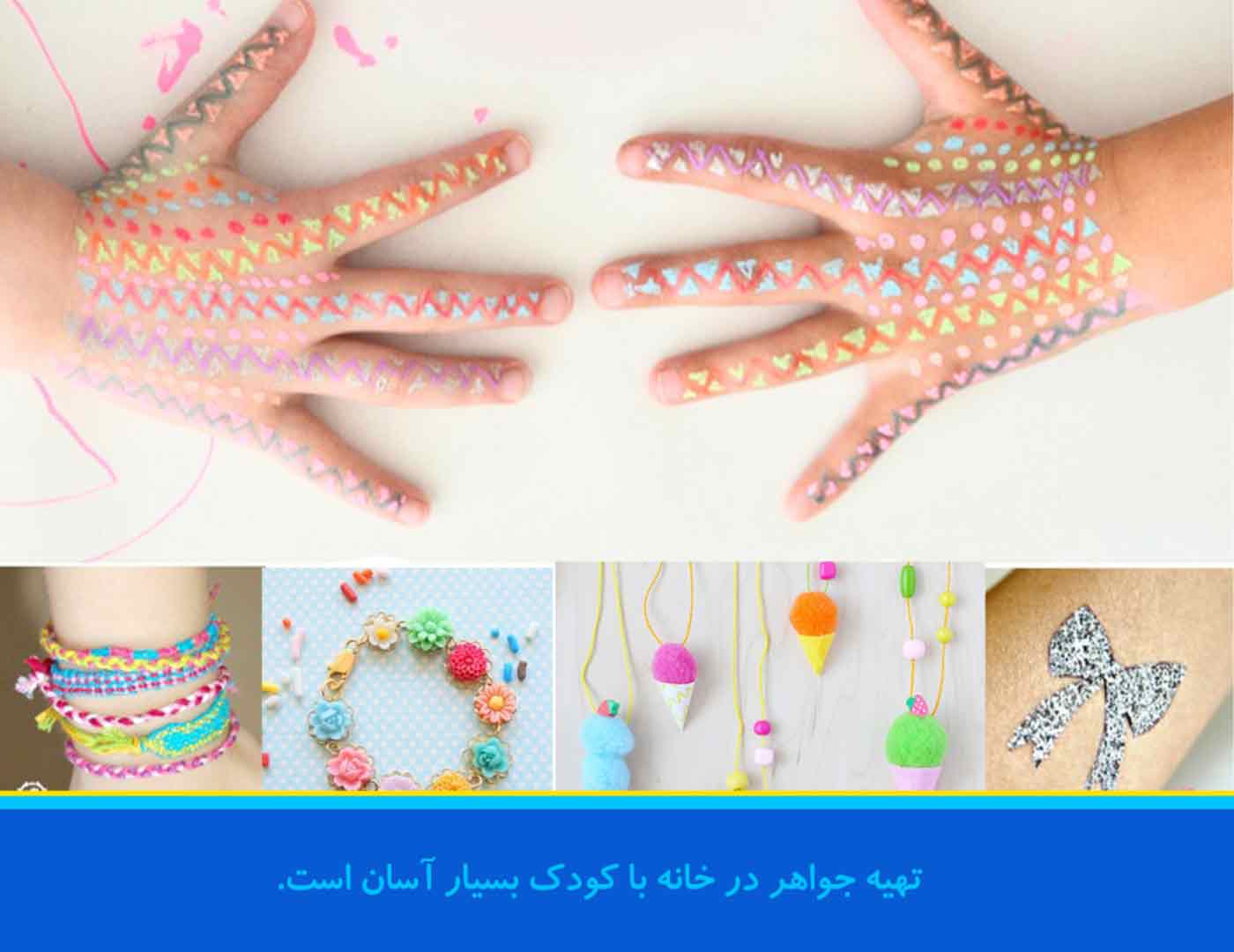 ساختن جواهر یک کار مفرح و ساده است که دخترها معمولا عاشق آن میشوند. پس با وسایل سادهای مانند نخ، مهره و اکلیل با دخترتان جواهر بسازید.